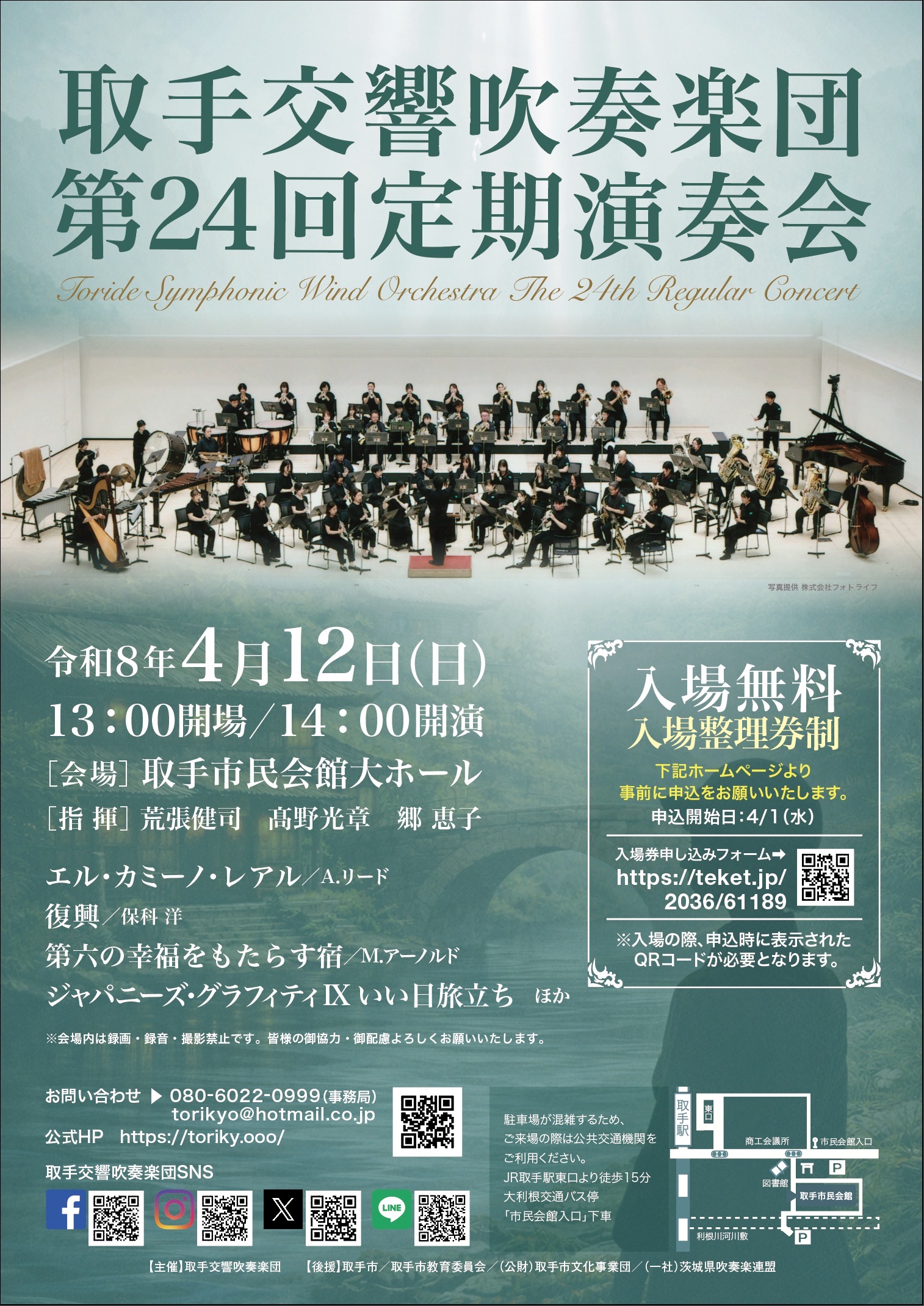 茨城県取手市を中心に活動している吹奏楽団です。団員は約80名。取手市近郊に住んでいる方を中心に、高校から社会人で構成されています。